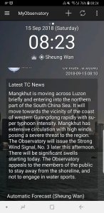 Pour se tenir au courant de l’arrivée des typhons et autres phénomènes météorologiques, tout habitant de Hong-Kong se renseigne via l’app du Hong-Kong Observatory qui va lui donner toutes les indications nécessaires et les consignes concernant la météo.