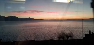 La tombée du jour depuis le train, entre Lausanne et Vevey!