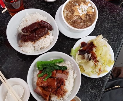 En effet, sous la dynastie Qing, la soupe au serpent était considérée comme un plat de haut rang et réservée à certaines classes supérieures de la société, en raison de sa préparation complexe. Actuellement, c’est plutôt populaire et ce n’est pas cher, puisque le tout (boissons, riz, légumes, saucisse de foie de canard en accompagnement, etc.) nous est revenu à une 90HKD, soit environ 11CHF!