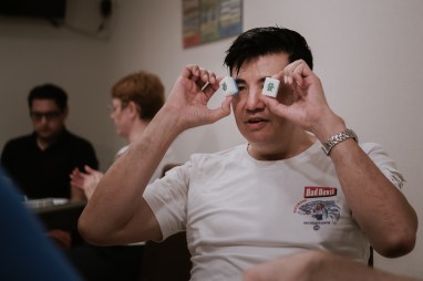 Gentiment, Eric se prête au jeu et répond à mes nombreuses questions. Cet Hongkongais, ayant grandi au Canada, nous fait part de son enthousiasme pour ce jeu qui a bercé sa jeunesse de mystère. « C’est en observant ma mère et mes tantes que je me suis trouvé attiré par ce jeu. Elles m’interdisaient d’y jouer, pensant que ça aurait une mauvaise influence sur moi ! »