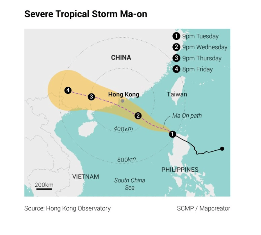 Le typhon qui s’est approché de Hong Kong cette nuit s’appelle Nesat.