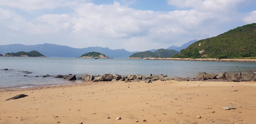 Nous nous baladons, découvrons un ancien camp de réfugiés datant de la guerre du Vietnam, sillonnons les sentiers… entrons dans un temple, apercevons la mue d’un serpent (ce qui ne nous laisse pas vraiment tranquilles…) et finissons sur la plage la plus calme de Hong Kong, où de petits crabes courent de manière rigolote et adorable.