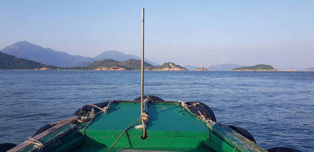 Avec deux copines, nous partons explorer une île déserte. L’excursion est mythique et nous prend du temps… nous nous rendons jusqu’à Cheung Chau, puis là je négocie avec le propriétaire d’un sampang pour qu’il nous y dépose et vienne nous rechercher à la fin de la journée ! Le batelier ne parlant pas un mot d’anglais, je sors mon meilleur cantonais… et je gesticule en parallèle avec les mains. Pour valider le tout, je lui montre ce que je veux et j’écris en chinois sur mon téléphone avant de lui planter l’écran devant le nez. Il rit, dodeline de la tête mais je crois que c’est bon. Nous nous sommes compris. Il nous dépose donc sur l’île et viendra nous rechercher à 15h30.