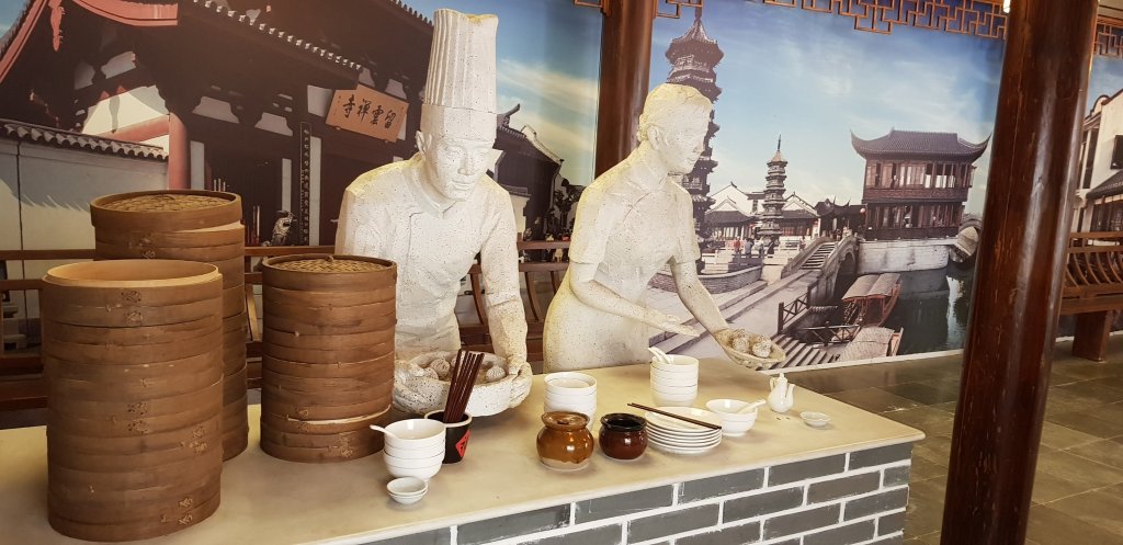 Nous sommes au beau milieu de nulle part. Alors nous décidons de revenir dans un lieu touristique et nous dirigeons vers la tour de Canton, un building de 500 mètres de haut construit en torsade. Tout près de la tour, nous nous arrêtons manger des dim sum. Nous voulons comparer avec Hong Kong. Et ils sont délicieux, énormes et très frais. Les serveuses sont au petit soin pour nous.