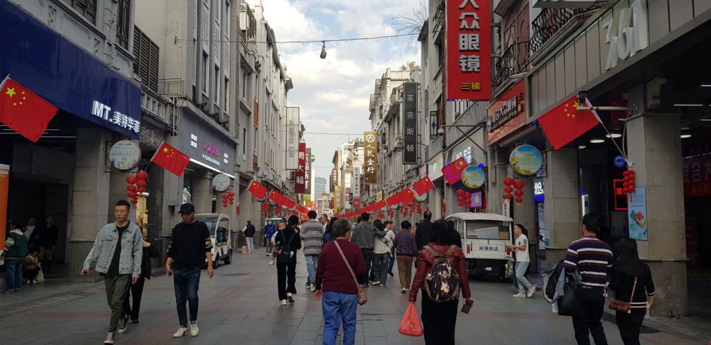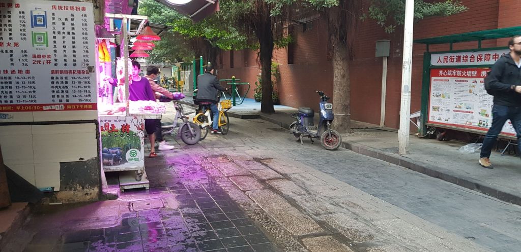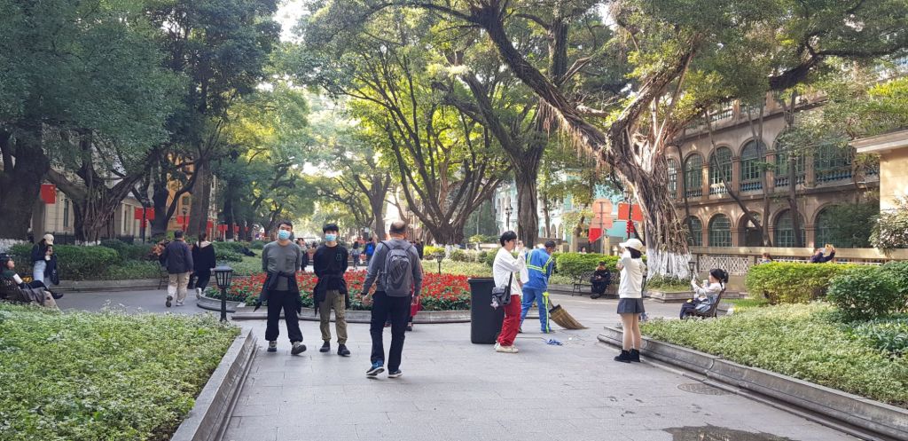 Nous nous sommes ensuite dirigés vers un lieu qui avait l’air super sympa : Redtory. Un lieu près de la rivière avec d’anciennes usines transformées en galeries d’art et en lieu hipster. Nous avons donc traversé la ville (tous les lieux intéressants se trouvent aux antipodes les uns des autres). En arrivant devant, un garde nous a stoppé net. Il ne parle que mandarin mais le message est clair : personne ne passera. C’est alors que nous tombons sur un couple. La jeune femme est cantonaise et nous précise que le lieu n’a pas survécu au Covid. A l’heure actuelle, tout est abandonné et d’ici quelques mois l’endroit aura été transformé en supermarché géant.