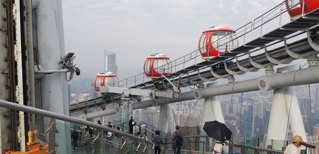 En haut de la tour, un parc d’attractions a été aménagé : matériel de grimpe, œufs pour faire le tour de la structure, basejumping. Quand je vois l’état des rails des télécabines, je passe mon tour.