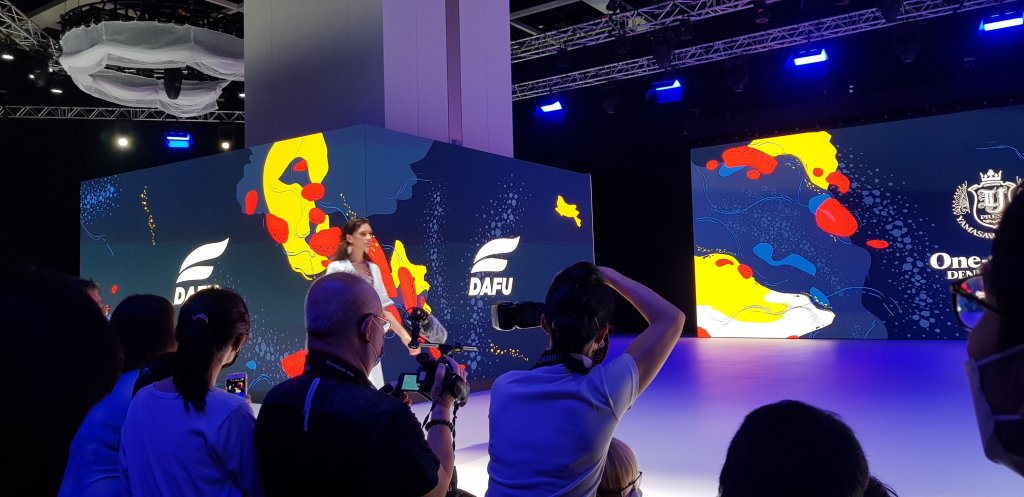 Dimanche, nous accompagnons des amis à un défilé de mode. Pour l’occasion, l’Exhibition Center accueille des stylistes, couturiers et créateurs en tous genres… et nous voilà, assis dans une grande halle devant une scène impressionnante. Plusieurs créateurs présentent leur travail. Pour l’occasion, de grands écrans diffusent des images qui bougent en rythme avec la musique.