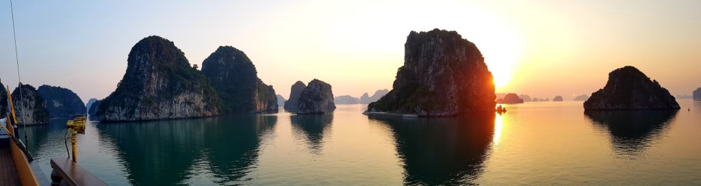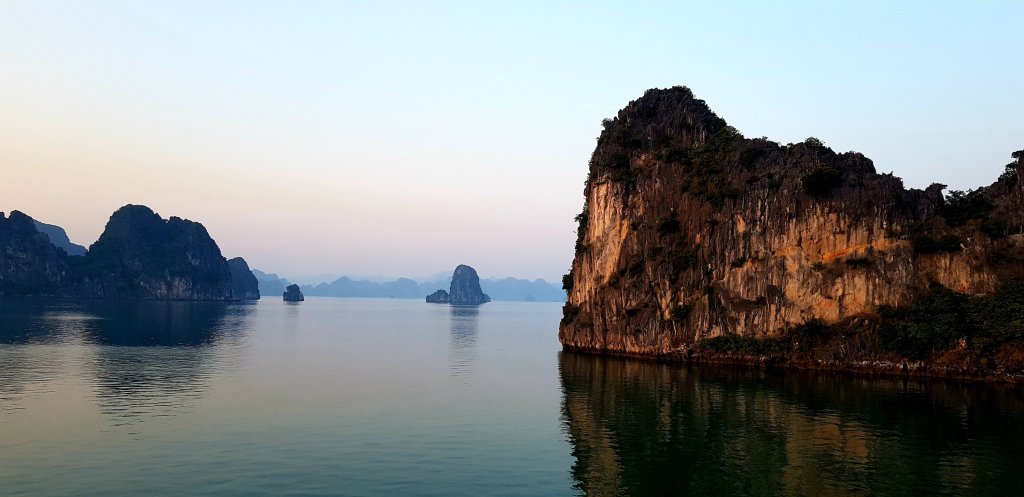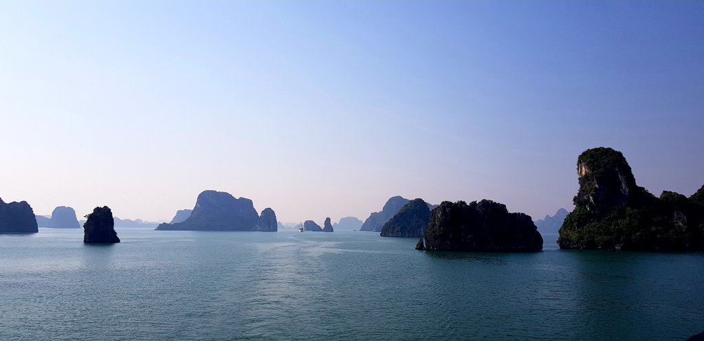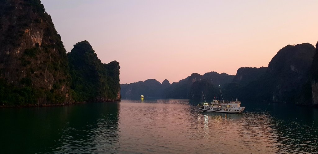 Après un repas plutôt décevant – la joie des tours – nous rejoignons le clou du spectacle : « la baie d’Halong terrestre », célèbre pour être le lieu du tournage du film Indochine. Le lieu est sublime… Reconnu comme patrimoine mondial par l’UNESCO, il comprend une forêt primaire préservée, une rivière, des grottes et des montagnes à couper le souffle.