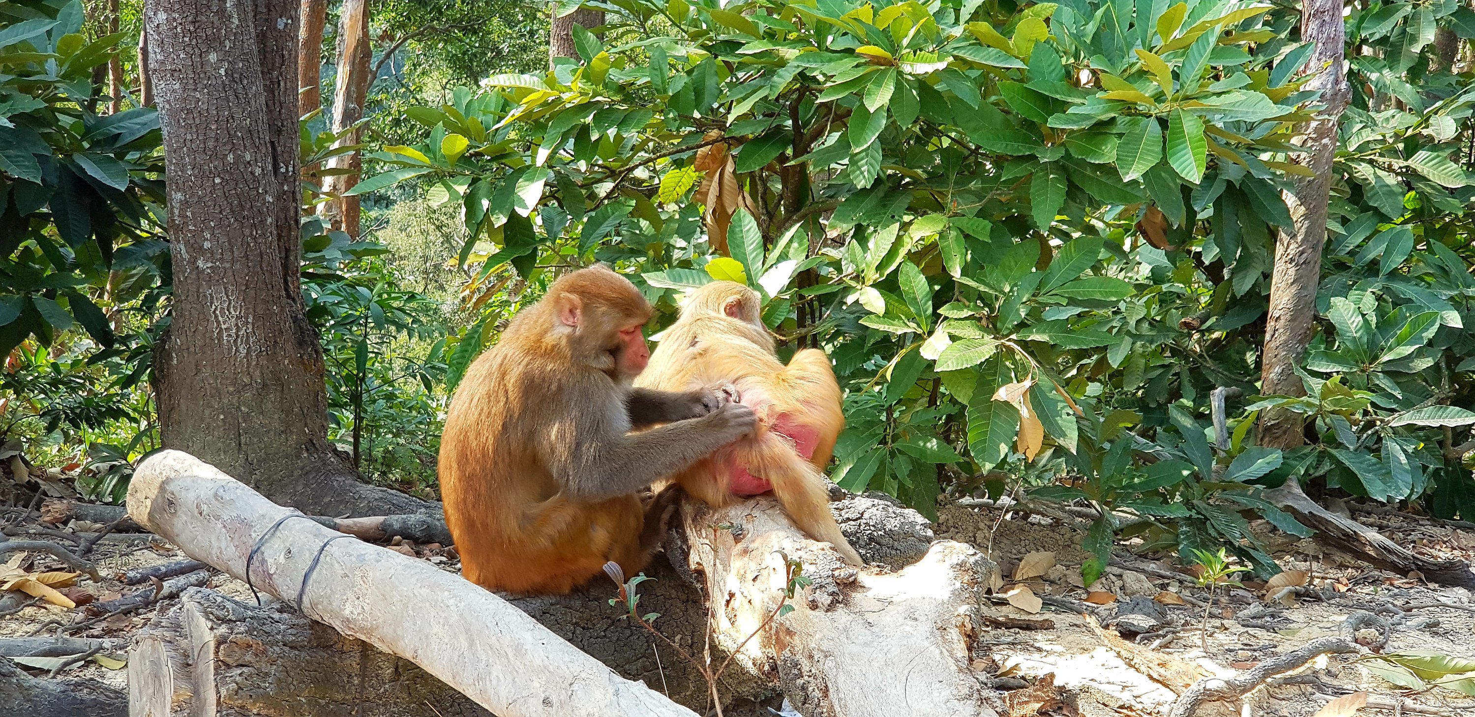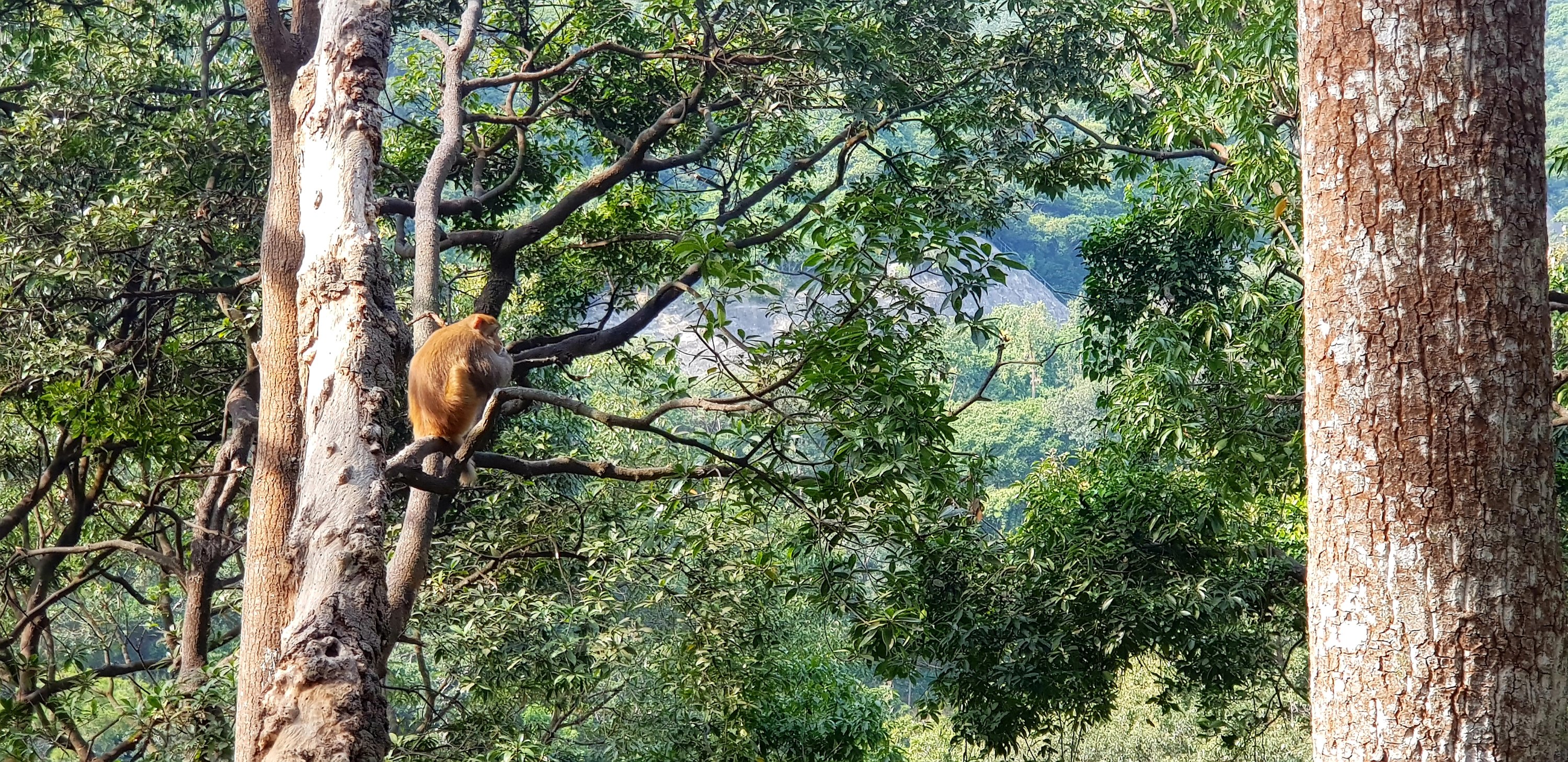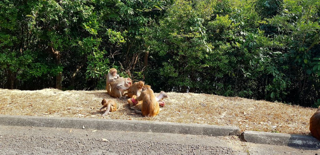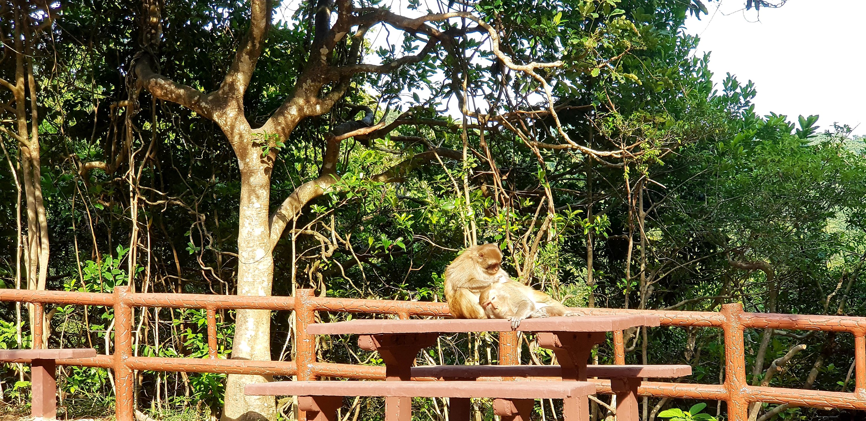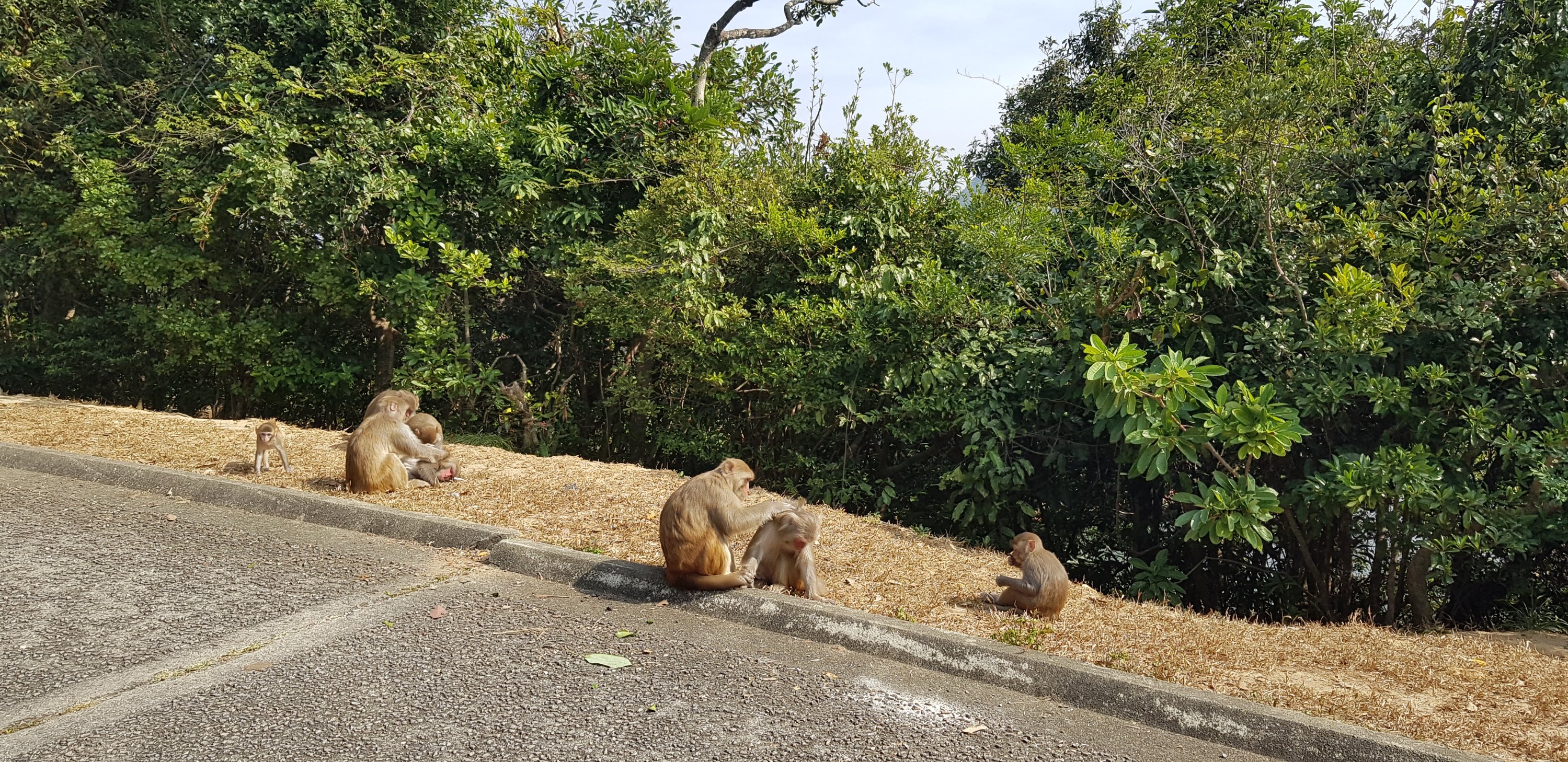 Nous sommes ensuite montés jusqu’à Sha Tin. Première étape : visite du 10’000 Bouddha Monastery perdu dans les montagnes. Au passage, nous avons admiré une horde de singes sauvages plutôt facétieux.