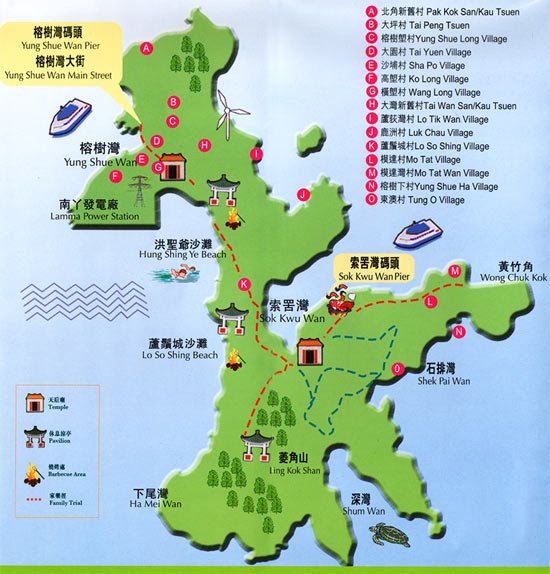 Aujourd’hui, nous aurions dû nous attaquer au Lion’s Rock, une montagne à la forme de… lion… située au Sud des Nouveaux Territoires. Malheureusement, ce matin, le ciel était voilé et tout l’intérêt de cette rando réside dans la vue spectaculaire qu’elle offre aux marcheurs chevronnés. Nous avons donc activé le plan B et avons décidé d’explorer les petits sentiers de l’île de Lamma, située à 30 minutes de bateau de Central. C’était une excellente idée – puisque les nuages sont restés accrochés aux montagnes. De notre île, nous avons tout simplement eu un temps radieux – soleil tapant et 26 degrés! Dur à croire qu’on est le 11 novembre!