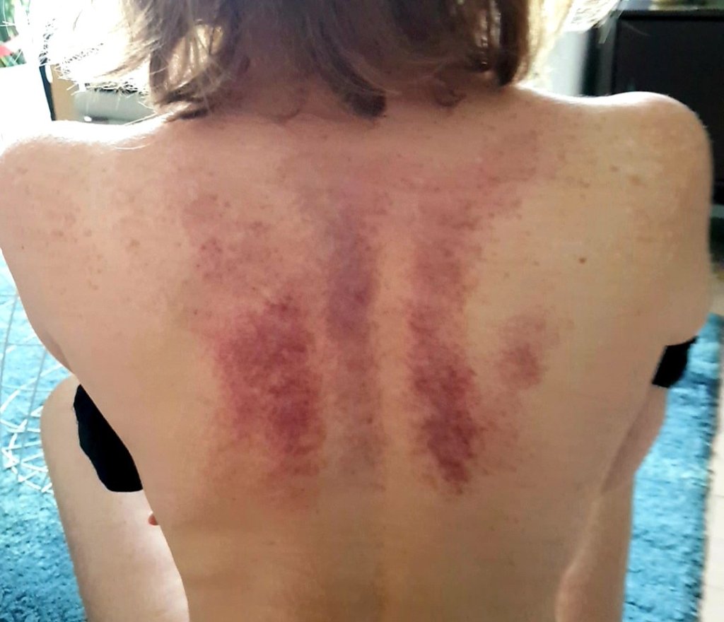 – Il y a deux manières de poser des ventouses, me dit-elle. Pour certaines affections, on en pose plusieurs et on laisse reposer. Ce qui fait des cercles rouges sur le dos des patients. Et là je vais masser une zone avec une ventouse.