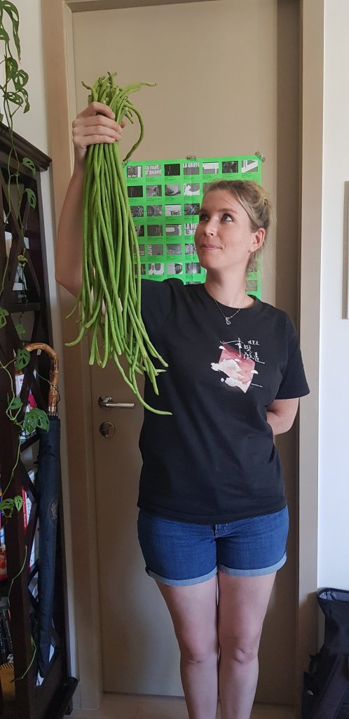 Après avoir fait quelques photos marrantes, j’ai fait quelques recherches et découvert que la variété d’haricots poussant en Asie du Sud Est est le fameux « haricot kilomètres ».