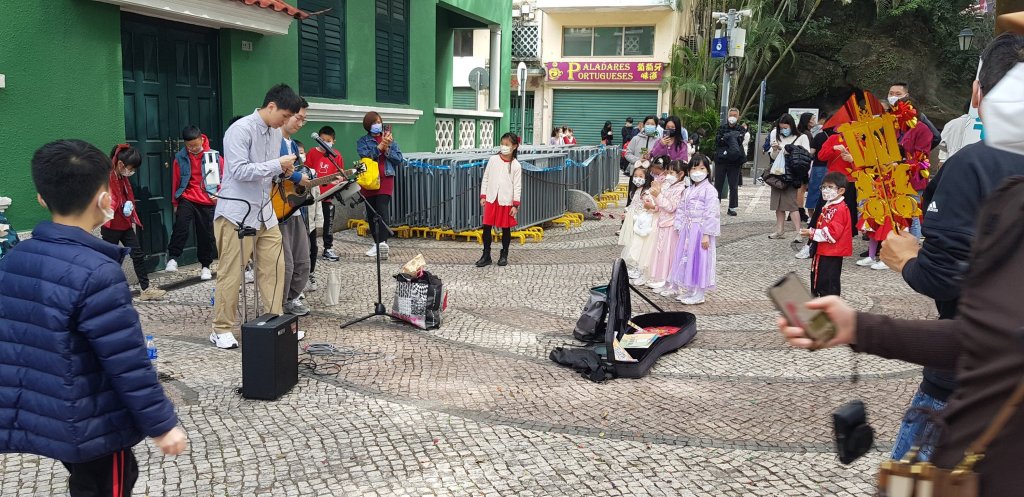 Comme c’est le matin du Nouvel An, c’est très calme. La grande majorité des commerces sont fermés et les habitant de Macau, habillés de rouge, se rendent chez leur famille pour manger. La route jouxtant le square Senado est devenue piétonne et les gens se baladent, prennent des photos. L’ambiance est à la détente.