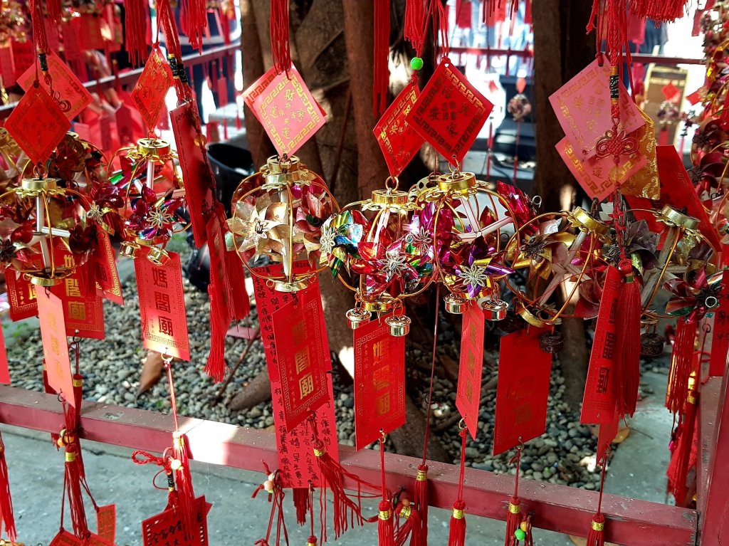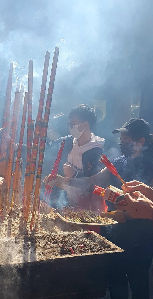 En arrivant au temple de A-Ma, la foule se fait plus pressante. Les enfants jettent des pétards sur le sol. Une petite fille m’en offre deux. Je suis toute contente. Les fidèles agitent leurs bâtons d’encens et font des vœux. Je me prête au jeu et je suspens un petit grigri sur lequel je note mes demandes. On ne sait jamais. L’odeur d’encens est si forte que mes yeux me brûlent.
