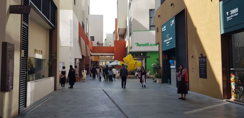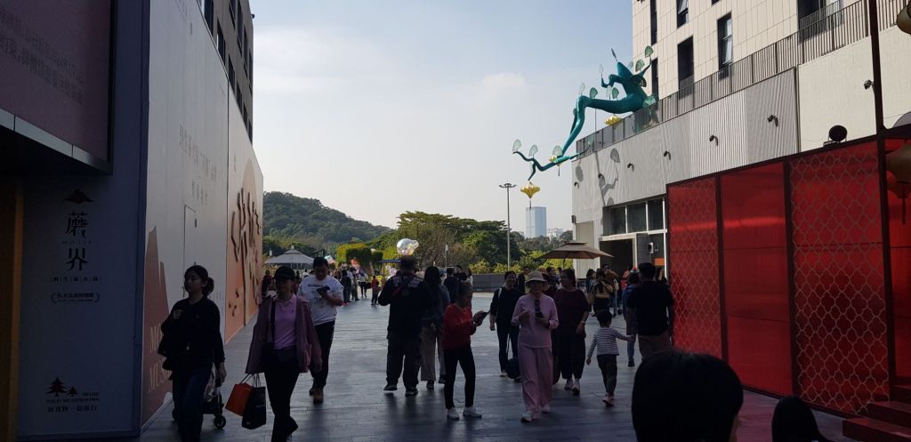 Ensuite, nous nous dirigeons vers un autre lieu vanté par les blogs listant les choses à faire à Shenzhen. La ville étant récente… elle s’est construite en 30 ans à peine sur un petit village de pêcheurs dont il ne reste que peu de choses… nous n’embrayons donc pas sur une visite historique. J’ai lu que le quartier de Upperhills était super, très beau architecturalement parlant. Alors go ! Mais en arrivant, c’est la déconfiture : c’est juste un mall. Il est certes assez Instagrammable et a la particularité d’être suspendu entre deux parcs… mais à part cela, c’est juste un centre commercial en somme. Nous en faisons vite le tour et rentrons faire une petite sieste. Je dois être en forme pour ce soir, il n’est pas question que mon torticolis m’empêche de célébrer 2024 avec panache! Non non non ! 2024 sera l’année de tous les possibles puisque je serai excusée de tout (ce sera la crise de la quarantaine, ça ne sera pas de ma faute, niak niak niak)!