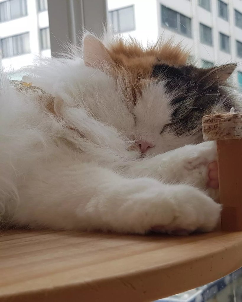 Je me lève samedi matin avec une idée en-tête : j’ai envie de visiter un cat café. Le concept est courant à Hong Kong. Dans les étages d’immeubles se cachent souvent des cafés thématiques : lapins, corgys, caniches ou chats… il est possible d’aller boire un verre en câlinant les mignonnes bébêtes !