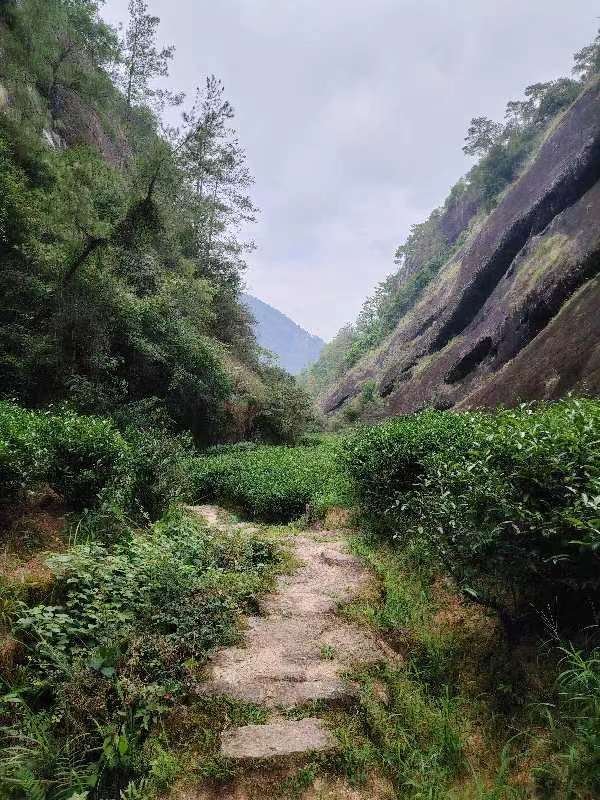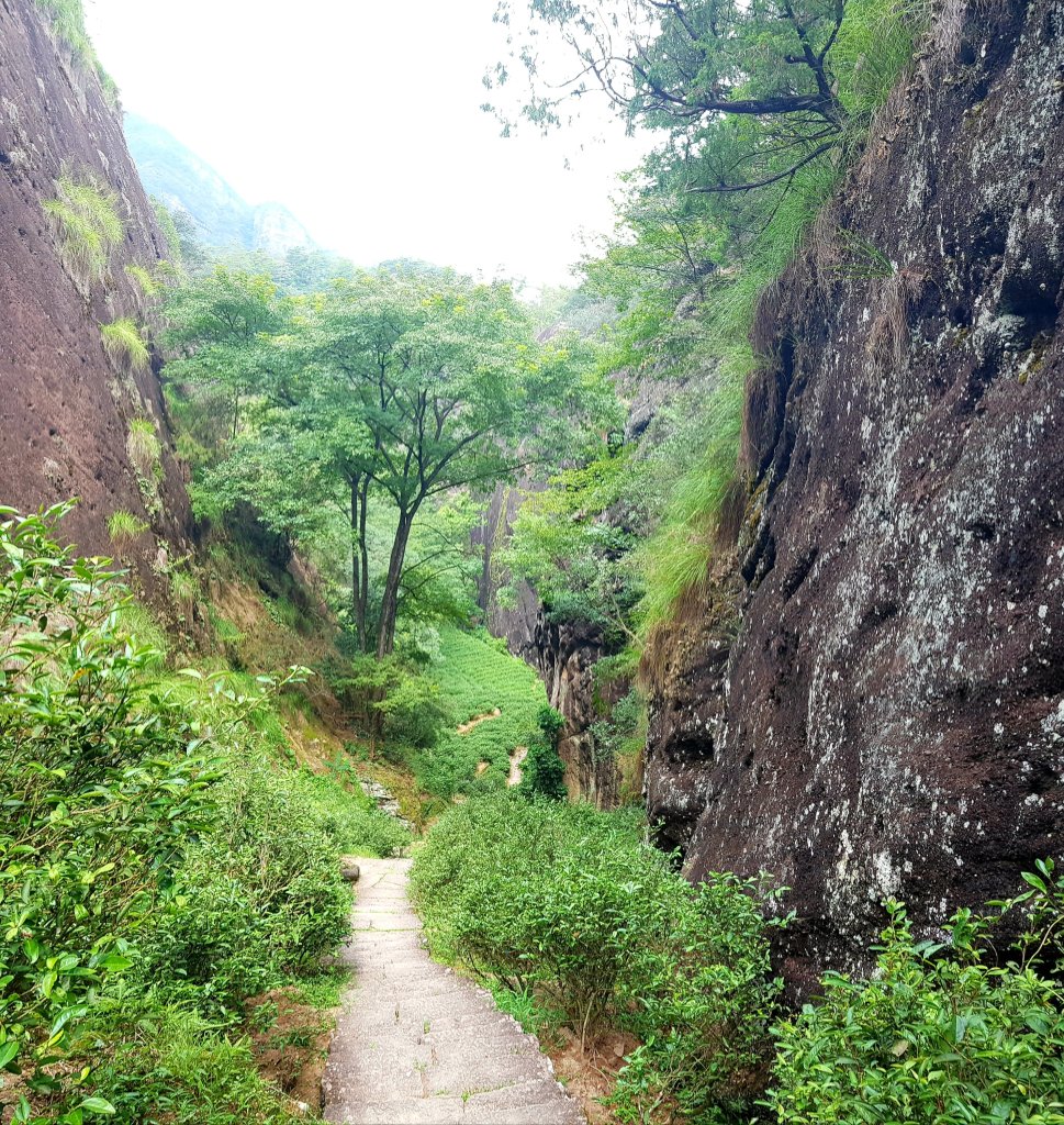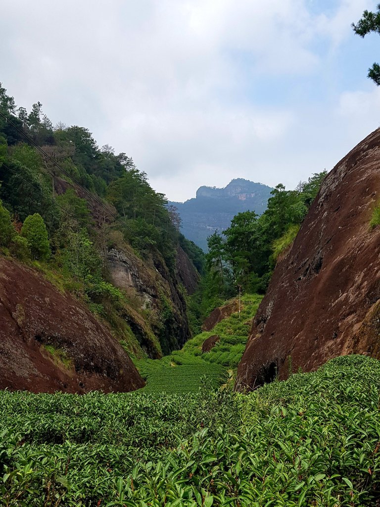 Après les présentations, la guide nous emmène directement dans la réserve du Wuyishan, un lieu fait de montagnes et de buissons de thé. La région est en effet célèbre pour son thé, puisque c’est ici qu’a été inventé le thé noir. Tout comme pour la tarte tatin, il est né d’un simple accident : un maître du thé ayant grillé un peu trop ses feuilles. Mais la région est également célèbre pour ses thés oolongs, également connus sous le nom de ‘yan cha’ (thé de roche) en raison de leurs notes minérales.