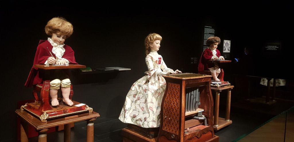 Ils furent conçus pour impressionner les cours royales d’Europe et faire de la pub pour l’entreprise Jacquet-Droz et écrivaient des textes, dessinaient et jouaient de la musique. C’est à la fois techniquement fou (il faut voir les rouages dans la dos des poupées…), poétique… et flippant !