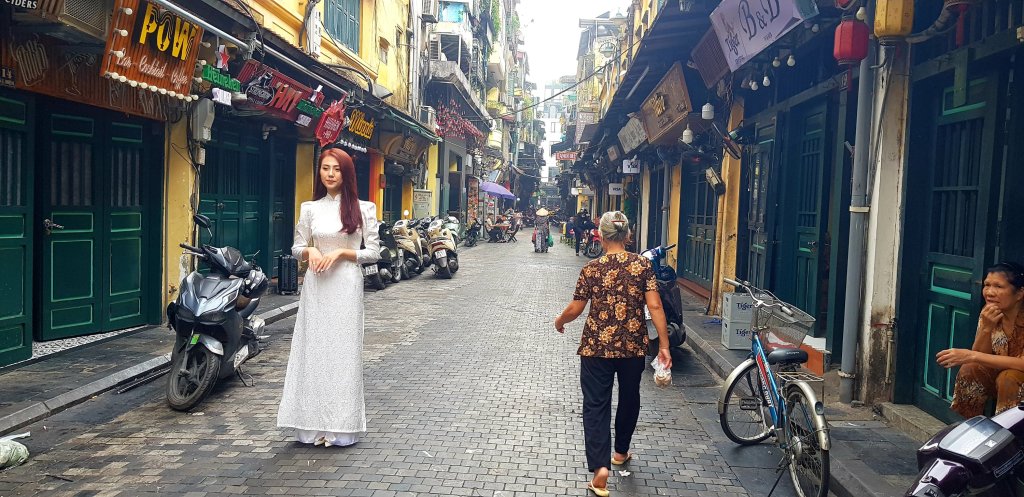 Une fois repus, nous partons à la conquête des divers quartiers de la cité. Hanoi est une ville d’ambiance et s’y promener au hasard est un vrai plaisir. Nous terminons notre périple au bord du lac Hoan Kiem où des mannequins s’exercent pour un défilé. Depuis une terrasse en hauteur, nous passons bien 45 minutes à les regarder. La température est parfaite et la bière est fraîche.