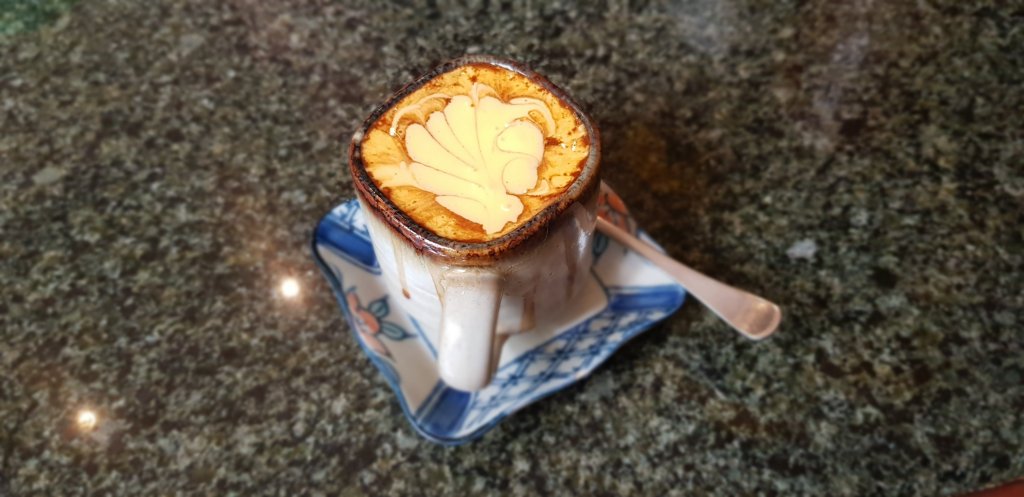 Nous nous dirigeons vers un café que m’a recommandé une bloggeuse ayant vécu 4 ans à Hanoi. Le lieu est au-delà de mes espérances. Le café est super mignon, au 1er étage d’une maison et se nomme le Loading T Café ! J’y goûte le fameux Egg Coffee, une spécialité préparée avec des jaunes d’oeufs battus, du sucre, du lait condensé et du café… et c’est délicieux ! Ca a la texture et le goût d’une crème caramel mêlée à un tiramisu. Je suis absolument conquise.