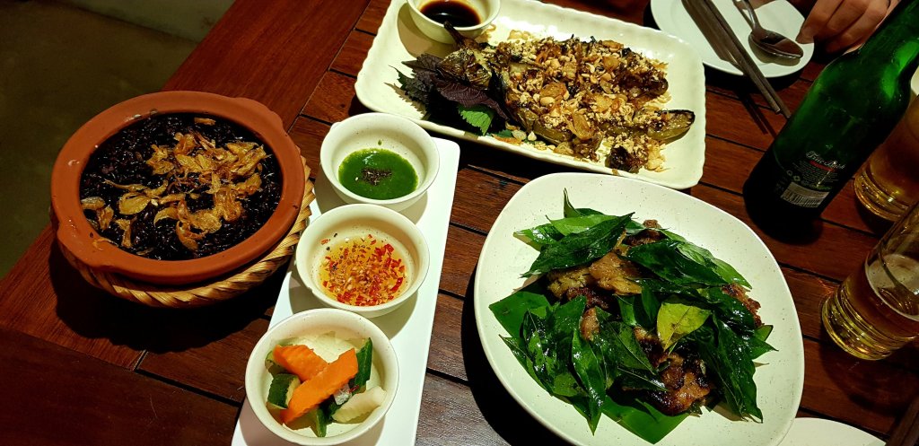 Le soir, nous mangeons dans un restaurant incroyable : le Luk Lak. On y goûte des plats du Nord du Vietnam… de Sapa pour être précise et je suis à nouveau complètement conquise par la cuisine locale. La gastronomie vietnamienne m’aura vraiment surprise. C’est parfumé, épicé mais pas trop. Chaque plat est différent. Ça contient énormément de produits frais. Cela rejoint mon top 5 des meilleures gastronomies asiatiques voire même mondiales !