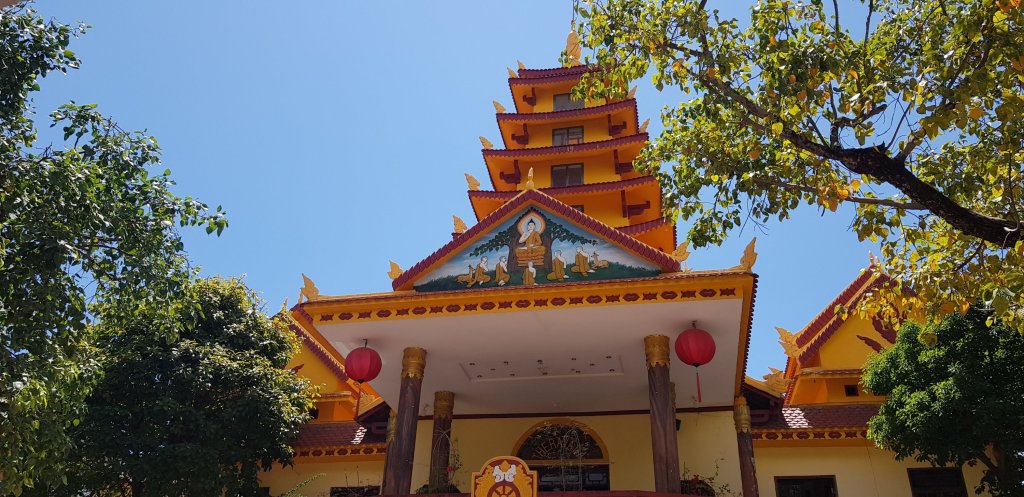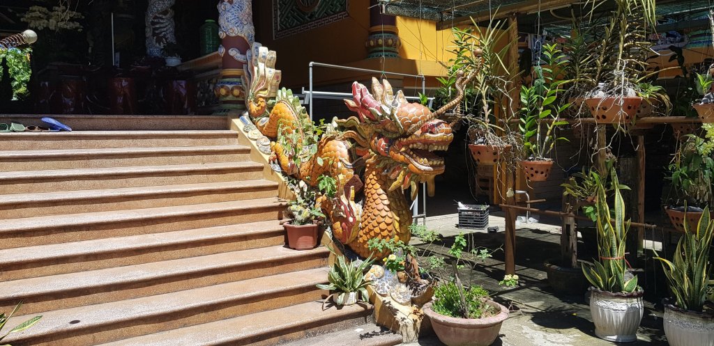 Après notre baignade, nous sommes partis explorer la ville. Méconnue, la ville de Da Nang recèle quelques trésors, dont sa cathédrale, son pont du dragon… et mon coup de coeur, le quartier de Fresco Village, un dédale de rues peintes de mille et une manières! C’est à ce moment que j’ai vécu mon aventure avec la nonne bouddhiste dont je vous parlais il y a quelques jours !